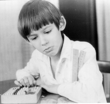 На этой фотографии изображён я в детстве. Как видно, тогда я уже любил счётные машины.
